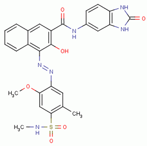 Aliases:2-Naphthalenecarboxamide, N- (2,3-dihydro-2-oxo-1H-benzimidazol-5-il) -3-hydroxy-4 - ((2-methoxy-5-methyl-4 - ((methylamino) sulfonyl) phenyl) azo) -; 2-Naphthalenecarboxamide, N- (2,3-dihydro-2-oxo-1H-benzimidazol-5-il) -3-hydroxy-4- (2- (2-methoxy-5-methyl-4 - ((methylamino)) sulfonyl) phenyl) diazenyl) -; N- (2,3-Dihydro-2-oxo-1H-benzimidazol-5-il) -3-hydroxy-4 - ((2-methoxy-5-methyl-4 - ((methylamino) sulphonyl) phenyl) azo) naphthalene-2-carboxamide; 12516; Scarlet Dwfn; Carmine Parhaol HF4C; Peony Red [HO]; ; (4Z) -4- {2- [2-methoxy-5-methyl-4- (methylsulfamoyl) phenyl] hydrazinylidene} -3-oxo-N- (2-oxo-2,3-dihydro-1H-benzimidazol-5 -yl) -3,4-dihydronaphthalene-2-carboxamide