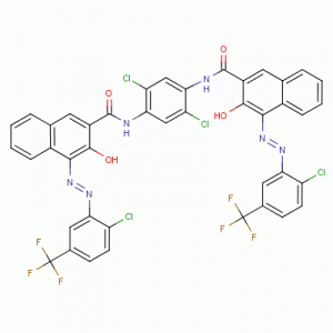 Alias Saesneg: Pigment coch 242; PR242; Scaror Sandorin 4RF; 2-Naphthalenecarboxamide, N, N '- (2,5-dichloro-1,4-phenylene) bis- [4 - [[2-chloro-5- (trifluoromethyl) phenyl] azo] -3-hydroxy-3-hydroxy -; (4Z, 4'E) -N, N '- (2,5-dichlorobenzene-1,4-diyl) bis (4 - {[2- chloro-5- (trifluoromethyl) phenyl] hydrazono} -3-oxo- 3,4-dihydronaphthalene-2-carboxamide); 4- [2-chloro-5- (trifluoromethyl) phenyl] azo-N- [2,5- dichloro-4 - [[4- [2-chloro-5- (trifluoromethyl) phenyl] azo-3-hydroxy-naphthalene -2-carbonyl] amino] phenyl] -3-hydroxy-naphthalene-2-carboxamide; N, N '- (2,5-dichloro-1,4-phenylene) bis [4 - [[2-chloro-5- (trifluoromethyl) phenyl] azo] -3-hydroxynaphthalene-2-carboxamide] Rhif CAS: 52238 -92-3